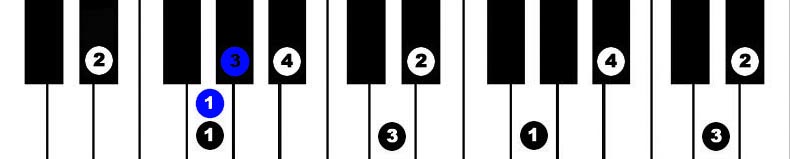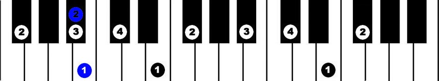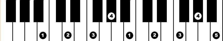 Hands together, starting with thumbs on F, 2 octaves