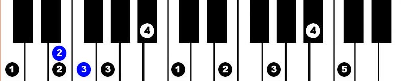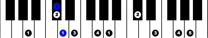 Hands together, starting with thumbs on B, 2 octaves